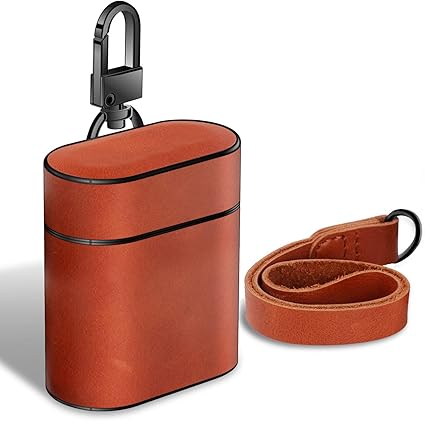 Amazon Airpods 本革ケース 保護 収納カバー 手作り カラビナストラップ付き 紛失防止 Apple ワイヤレスイヤホン専用 ブラウン Seak イヤホン ヘッドホンケース